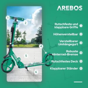 Arebos Cityroller Grün, klappbar, bis 100kg