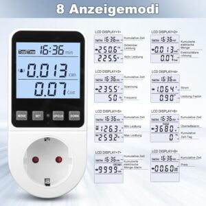 Stromzähler Steckdose mit 8 Modi, kWh-Messgerät