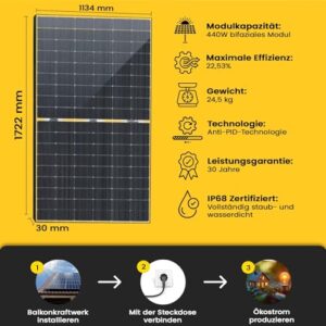 SUNSHARE 800W Balkonkraftwerk mit Halterung