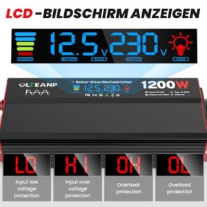 OLTEANP Wechselrichter 12V auf 230V 1200W Reiner Sinus