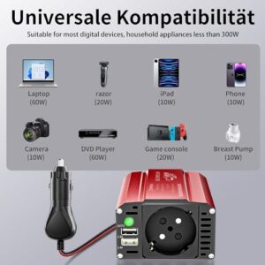 AUCARAUTO 300W Spannungswandler 12V auf 230V