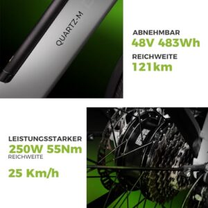 E-Bike 26 Zoll, 36V Akku, 90 km Reichweite, 250W Motor