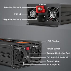 EDECOA Spannungswandler 1000W Sinus mit LCD