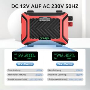 12V auf 230V Sinus Wechselrichter 2000W (Dauer 1000W)
