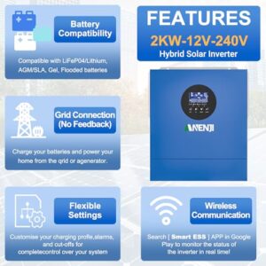 Aninerel 2000W Hybrid Wechselrichter 12V/230V