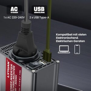 LVYUAN 700W Wechselrichter 12V auf 230V mit USB