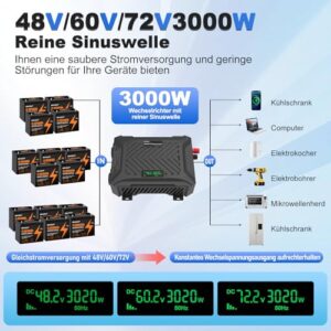 3000W Wechselrichter 48-72V auf 230V Reiner Sinus