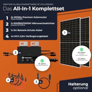 Balkonkraftwerk 1000W mit 3,2 kWh Speicher & Halterung