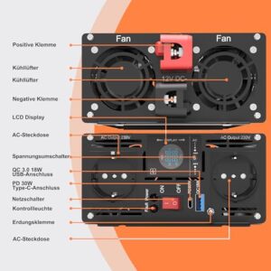 Joemnwart 2000W Sinus Wechselrichter 12V auf 230V