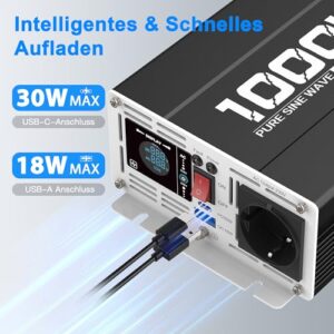 1000W Reiner Sinus Wechselrichter 12V auf 230V