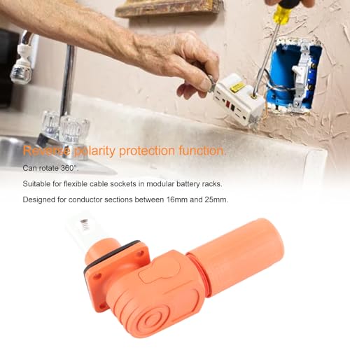 Fragen und Antworten zu 2 Stück Energie-Batteriespeicher-Stecker M8 200 A 1-adriger Pfostenstecker, flexibel, um 360° drehbar, Verpolungsschutz, feuerfest, für Energiespeichersystem für Elektrofahrzeuge, (Orange)