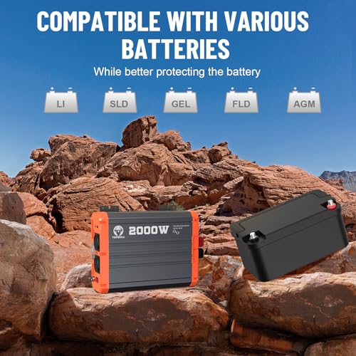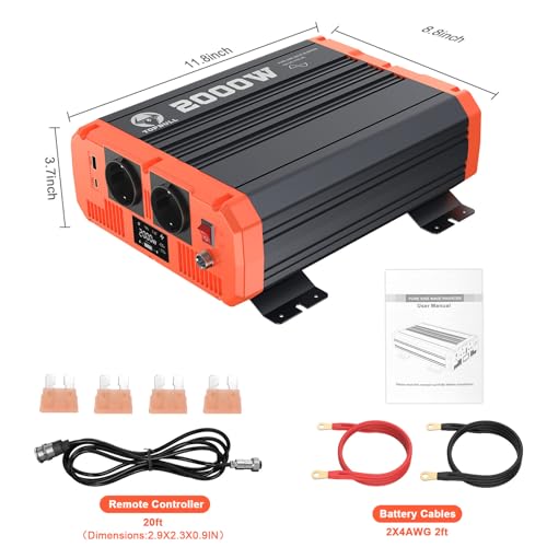 Fragen und Antworten zu 2000 Watt Wechselrichter 12v auf 230v Reiner Sinus Spannungswandler KFZ Netzvorrangschaltung mit LCD-Display und 1 USB 1 Type-C Ausgang 2AC Steckdosen Inverter für Haushaltsgeräten mit Fernsteuerung