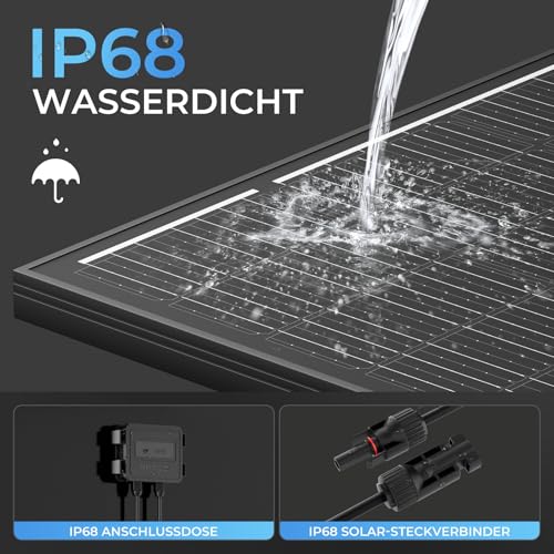 Dieses 240W Solarpanel Kit bietet dir eine komplette Lösung für die Stromversorgung abseits des Stromnetzes. Es enthält zwei 120W monokristalline Solarmodule, die sich durch eine hohe Solarzelleneffizienz von 24 % auszeichnen. Diese Module wandeln Sonnenlicht besonders effizient in Energie um. Das robuste Design der Solarmodule ist auf Langlebigkeit ausgelegt und hält laut Produktbeschreibung starken Winden und Schneefall stand. Die Module sind zudem hochgradig wasserdicht.