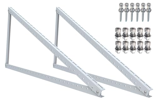 Diese 2x PV Halterung mit 118cm Länge ist ideal für die Aufständerung von Solarpanelen und Solarmodulen auf Flachdächern. Das Set beinhaltet Halterungen, die speziell für die Montage von Photovoltaik-Anlagen entwickelt wurden. Durch die Verwendung dieser Halterungen kannst du den optimalen Neigungswinkel für deine Solarmodule einstellen, um so die Sonneneinstrahlung bestmöglich auszunutzen. Das Dreieck-Design sorgt dabei für Stabilität und eine sichere Befestigung der Module.
