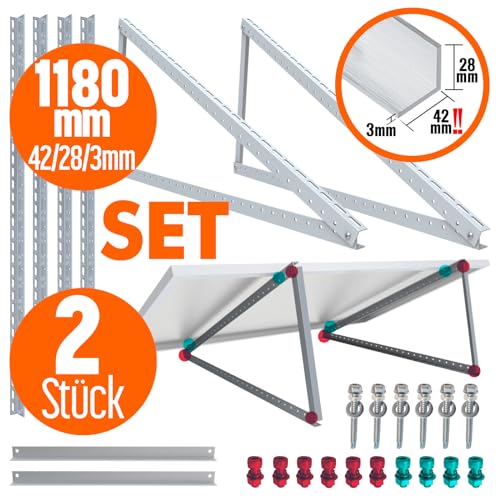 - Die Halterungen sind 118cm lang und damit für viele gängige Solarpanel-Größen geeignet. Bitte prüfe vor dem Kauf die Abmessungen deiner Solarpanel.