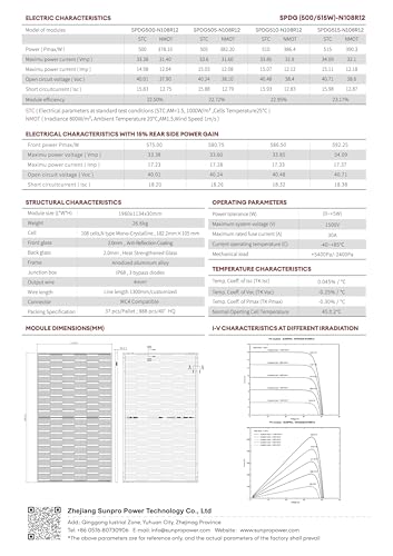 Mit einer maximalen Leistung von 500 W pro Modul und einem Spitzenwirkungsgrad von 22,7% gehören diese Solarmodule zu den effizientesten ihrer Klasse. Die 3 Bypassdioden sorgen für eine optimale Leistung auch bei Teilverschattung. Die Module sind TÜV-geprüft und verfügen über Zulassungen nach IEC 61215, IEC 61730, IEC 61701 und IEC 62716. Das Glas-Glas Design macht die Module besonders robust und widerstandsfähig gegen Umwelteinflüsse.