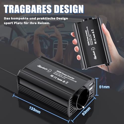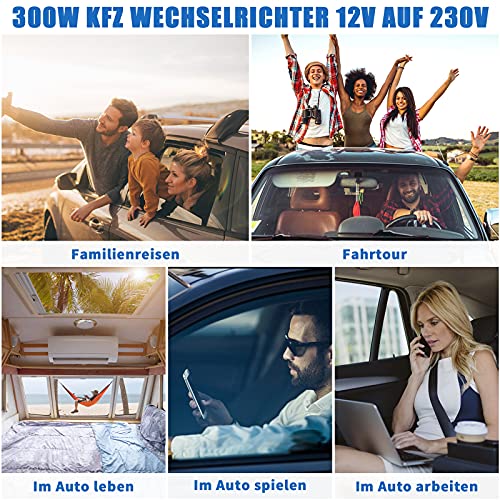 Produktbeschreibung: 300W KFZ Wechselrichter LEICESTERCN Spannungswandler 12v 230v Stromwandler 12 auf 230 Inverter mit EU Steckdose 2 USB Anschlüsse KFZ Zigarettenanzünder Stecker