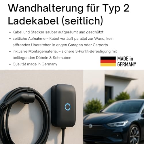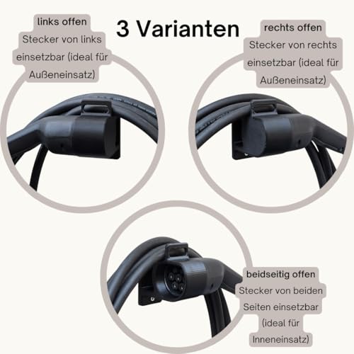 Produktbeschreibung: 3disto Wandhalterung Typ 2 Ladekabel seitlich | EV Steckerhalter mit Kabelhalter | Made in Germany | wetterfest | passend für alle Typ 2 Stecker nach DIN EN 62196-1 (rechts offen)