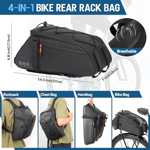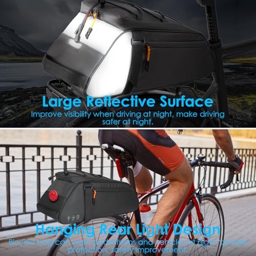 Produktbeschreibung: 4 in1 Fahrrad Gepäckträgertasche, 10L Wasserdicht Reflektierend Bike Saddle Bag Multifunktionale Bike Rear Rack Bag mit Shoulder Strap Rucksackfunktion für Radfahren Pendeln Camping (Schwarz)