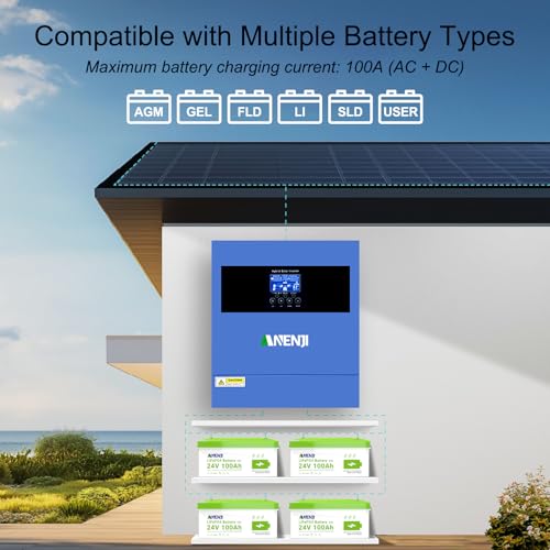 Fragen und Antworten zu 4200W Solar Hybrid Wechselrichter 24Vdc zu 230Vac Reiner Sinus Wechselrichter mit 100A MPPT Solarladeregler, Max PV-Eingangsspannung 500V, für 24V Lithium Batterien,mit WiFi-Modul