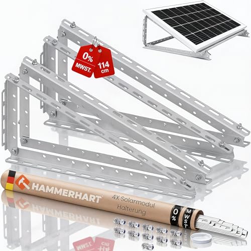 Fragen und Antworten zu 4x Balkonkraftwerk Halterung – 0% MwSt│Halterung für Balkonkraftwerk bis zu 114.5 cm│Einstellbar 0-90°│Solarmodul Halterung für Balkonkraftwerk│Robuste Solarpanel Halterung TÜV geprüft