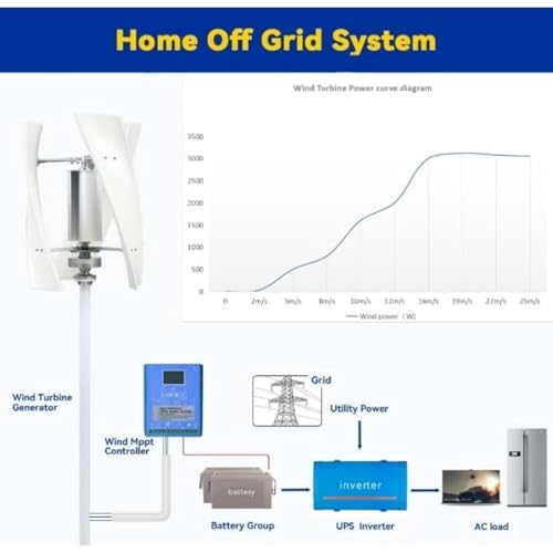 Vertikale Windturbinen wie dieses Modell unterscheiden sich von horizontalen Windturbinen hauptsächlich in ihrer Bauweise und ihrem Betriebsgeräusch. Vertikale Modelle sind oft leiser und benötigen eine geringere Startwindgeschwindigkeit. Die Leistung kann je nach Modell variieren, ebenso die Eignung für verschiedene Windverhältnisse. Der enthaltene Controller und die einfache Installation sind weitere Faktoren, die dieses Produkt von anderen unterscheiden können.