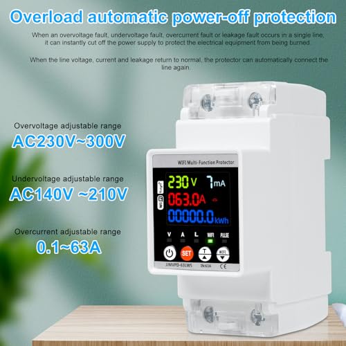 Fazit zu 63A Wlan Stromzähler Automatischer Überspannungsschutz Blitzschutz Sicherungsautomat LCD Wechselstromzähler Smart Leckage Über Unterspannungsschutz (Einstellbare Spannung Stromstärke)