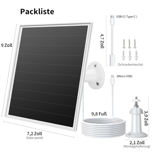 Fragen und Antworten zu 8W Solarpanel für Außenüberwachungskameras, Solarladegerät mit 5-Volt-Micro-USB- und USB-C-Anschluss, kompatibel mit Eufy/Wyze/Reolink, Schnellladung