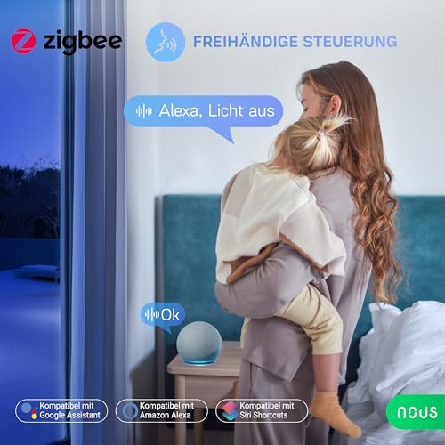 - Kompatibel mit Alexa und Google Home für Sprachsteuerung.