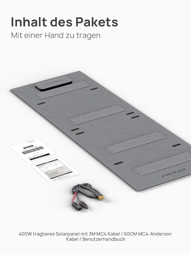 Produktbeschreibung: AFERIY Faltbares Solarpanel 400W Solarmodul ETFE für Tragbare Powerstation und Outdoor Solargenerator Hoch Leistung Akku für Camping Garten Laptop