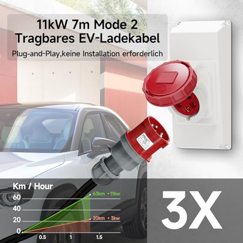 Fragen und Antworten zu AFYEEV Mobile Wallbox 11kW, Typ 2 Ladekabel CEE Stecker, 3-Phasig, 7M, 6-16A,Tragbares EV-Ladegerät und Mobile Wallbox Ladestation für IEC 62196-2