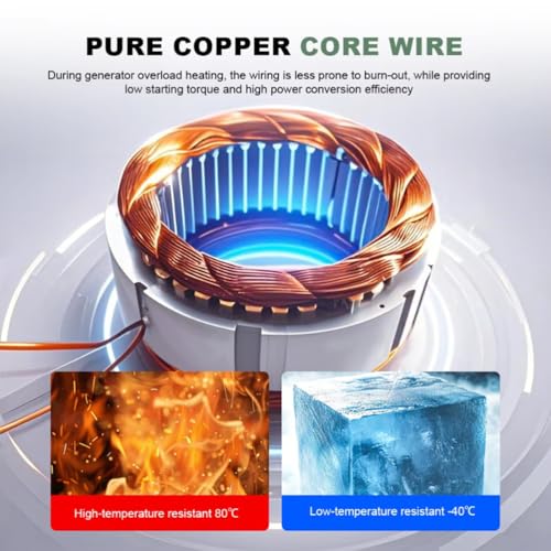 Der Windmühlengenerator ist gut verarbeitet und einfach zu installieren. Dank des humanisierten Flanschdesigns ist die Installation und Wartung unkompliziert. Der Generator selbst ist ein dreiphasiger Permanentmagnet-Synchronmotor. Hocheffiziente, kompakte Lichtmaschinen mit leistungsstarken Permanentmagneten sollen eine effiziente Regelung von Strom und Spannung ermöglichen.