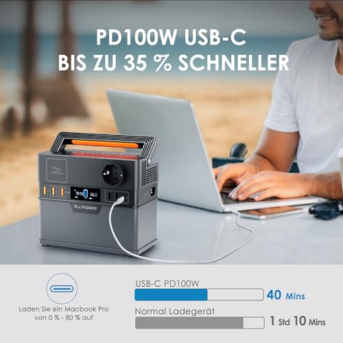 Produktbeschreibung: ALLPOWERS S300 PLUS Tragbarer Powerstation 288Wh Mobile Stromversorgung Generatoren 300W Batterie Mobiler Stromspeicher für Garten Party Reise Camping Wohnmobil Notfall