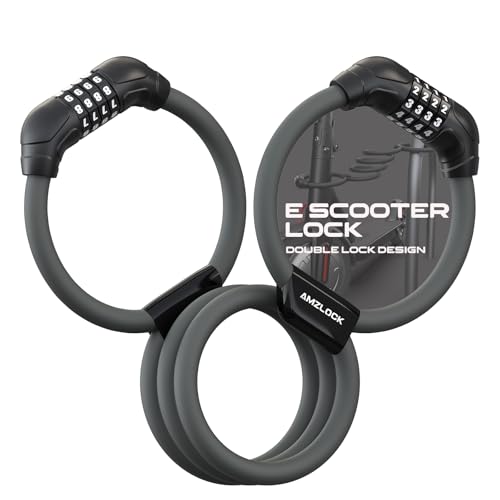 Produktbeschreibung: AMZLOCK E Scooter Schloss, Doppelschloss-Kabelschloss, Schloss für E Scooter mit 4-stelligem Code, Handschellenschloss für E-Scooter, Fahrrad und Roller