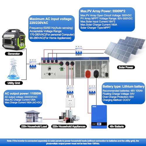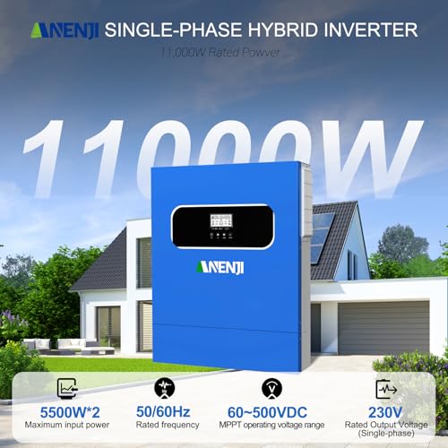 Produktbeschreibung: Aninerel 11kW Solar Hybrid wechselrichter 48VDC zu 230VAC Reiner Sinus Wechselrichter, Built-in 2 MPPT, Kann Strom in Das Netz Einspeisen Kann Ohne Batterie Verwendet Werden, Built-in WiFi-Modul