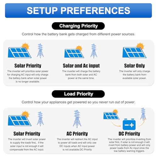 Ein weiteres Highlight ist die Möglichkeit, den Wechselrichter mit oder ohne Batterien zu betreiben. Dies bietet dir Flexibilität bei der Gestaltung deines Energiesystems. Der Aninerel Wechselrichter ist außerdem mit zwei MPPT-Eingängen ausgestattet, was den Anschluss von zwei separaten PV-Systemen erlaubt. Der Wechselrichter verfügt über eine Reihe von Schutzfunktionen, darunter Kurzschlussschutz, Überstromschutz, Überspannungsschutz, Unterspannungsschutz, Überlastschutz, Ladeschutz und Übertemperaturschutz. Diese umfassenden Schutzmechanismen sorgen für einen sicheren und zuverlässigen Betrieb.