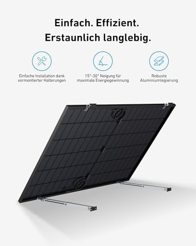 Im Vergleich zu anderen Wandhalterungen für Solarmodule zeichnet sich die Anker SOLIX Halterung durch ihre Verstellbarkeit aus. Viele andere Halterungen bieten nur einen festen Winkel, was die Optimierung der Sonneneinstrahlung erschwert. Das Material, die Aluminiumlegierung, sorgt für eine gute Balance zwischen Gewicht und Stabilität, was bei Halterungen aus einfachem Stahl oft nicht gegeben ist. Die einfache Installation durch Vormontage ist ein weiterer Vorteil gegenüber komplexeren Systemen.