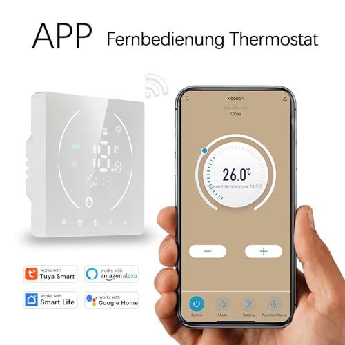 Fragen und Antworten zu Arpokcoe Thermostat Fussbodenheizung, Raumthermostat Fußbodenheizung Für Wasserfußbodenheizung, Smart WiFi Thermostate Heizung kompatibel mit Alexa, Tuya, Google Home, 3A, Weiß