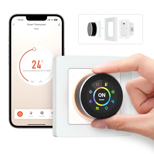 Der AVATTO Thermostat für Wasser Fußbodenheizung ist ein intelligenter, programmierbarer Raumthermostat, der dir hilft, die Temperatur in deinem Zuhause komfortabel und effizient zu steuern. Mit seiner 55 x 55 Standardgröße passt er in viele gängige Abdeckrahmen. Dank der WiFi-Funktion und der Unterstützung von Alexa und Google Home, kannst du die Heizung bequem per App oder Sprachbefehl steuern.