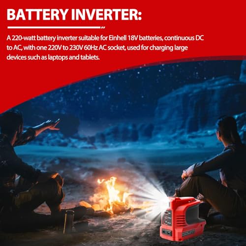 Fragen und Antworten zu Behogan 220W Akku Wechselrichter für Einhell 18V Akku DC 18V auf AC 220V tragbares Netzteil Spannungswandler Adapter mit USB Type-C Anschluss DC12V und LED Lampe