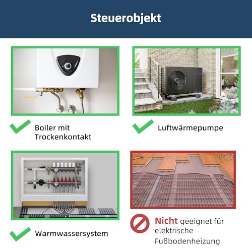 - Laut Produktbeschreibung ist das Thermostat für Wasser- und Kesselheizungen geeignet, wie Gaskessel, thermoelektrische Köpfe, elektrische Ventile und Pumpen.