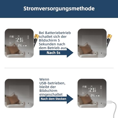 Fragen und Antworten zu Beok Thermostat Fussbodenheizung Smart Für Wasser Fußbodenheizung und Boiler, Tuya WLAN Raumthermostat Digitale Heizungsthermostat Unterstützung für Desktop und Wand, Batterie oder USB,BOT-R8X-WIFI