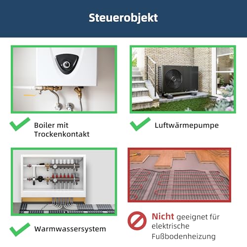 Der Beok Thermostat BOT-R3X-WIFI ist eine ausgezeichnete Wahl für dich, wenn du deine Wasser-Fußbodenheizung oder deinen Gaskessel intelligent und effizient steuern möchtest. Besonders überzeugend sind die WiFi-Funktion, die dir die Steuerung von überall aus ermöglicht, sowie die Kompatibilität mit Alexa und Google Assistant, die eine komfortable Sprachsteuerung ermöglicht. Durch die tägliche Programmierung kannst du deine Heizkosten senken und gleichzeitig den Komfort erhöhen. Achte bei der Installation auf ein stabiles 2,4GHz WLAN-Netzwerk und platziere den Thermostat an einem geeigneten Ort, um eine korrekte Temperaturmessung zu gewährleisten.