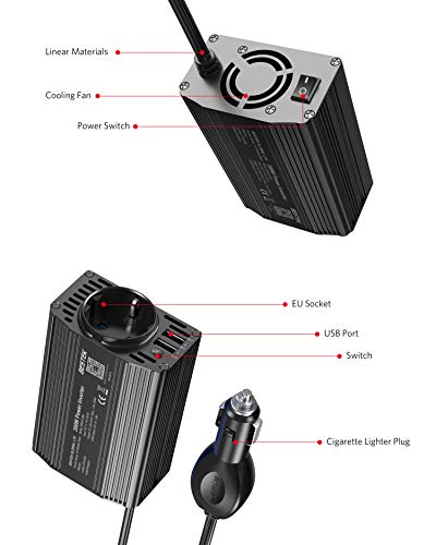 Fazit zu BESTEK 300W Wechselrichter/Spannungswandler 12v 230v /Stromwandler Inverter 12v auf 230v /mit Zertifiziert und Dual USB 4,8 A inkl. Kfz Zigarettenanzünder Stecker, Schwarz