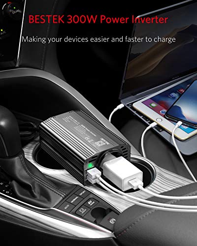 Fragen und Antworten zu BESTEK 300W Wechselrichter/Spannungswandler 12v 230v /Stromwandler Inverter 12v auf 230v /mit Zertifiziert und Dual USB 4,8 A inkl. Kfz Zigarettenanzünder Stecker, Schwarz