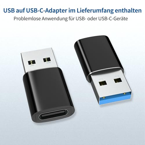- Inklusive USB-A auf USB-C Adapter