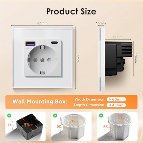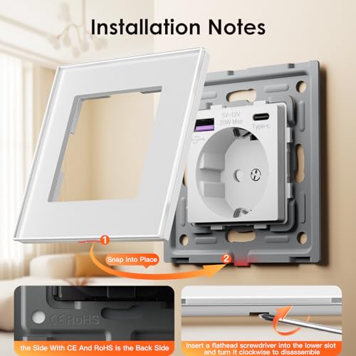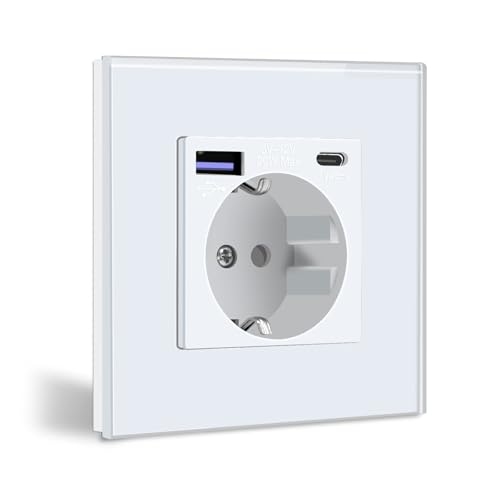 Fragen und Antworten zu BSEED Schuko Steckdose mit USB C 20W Schnellladegerät USB Type C Wandsteckdose mit Glas Panel, USB Steckdose Unterputz, Einbausteckdose Geeignet für Phone, Pad,MP3 und mehr-Weiß