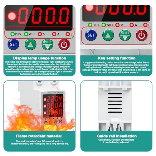 Zusätzlich zum Stromzähler selbst verfügt das Gerät über eine Vielzahl von Schutzfunktionen. Dazu gehören unter anderem ein Überspannungsschutz, ein Unterspannungsschutz, ein Überstromschutz, ein Auslaufschutz und ein Temperaturschutz. Durch diese Funktionen wird nicht nur das Gerät selbst, sondern auch deine angeschlossenen Geräte vor Schäden geschützt. Die robuste Bauweise mit einem Gehäuse aus feuerfestem ABS-Spritzguss sorgt für eine lange Lebensdauer und hohe Sicherheit.