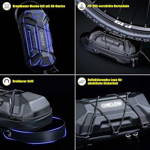 Im Vergleich zu anderen Lenkertaschen für E-Scooter zeichnet sich die CHICLEW Tasche durch ihr individualisierbares Design mit den farbigen Zugbändern aus. Viele andere Taschen bieten nur Standardfarben. Auch das wasserdichte Material und die robuste EVA-Hartschale sind nicht bei allen Modellen Standard. Einige günstigere Taschen verzichten auf diese Features und bieten weniger Schutz für den Inhalt.