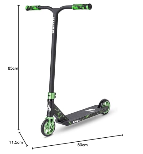 Produktbeschreibung: Chilli Pro Scooter Reaper Reloaded V2 | High-End Stunt Scooter | High-End Street Scooter für erfahrene Rider | Gesamthöhe vo 85 cm | 120 mm PU Räder mit ABEC 9 Bearings | Green